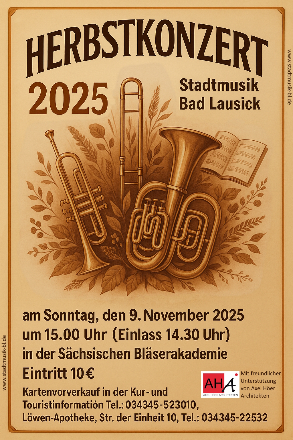 Herbstkonzert der Stadtmusik Bad Lausick am 9. November um 15.00 Uhr