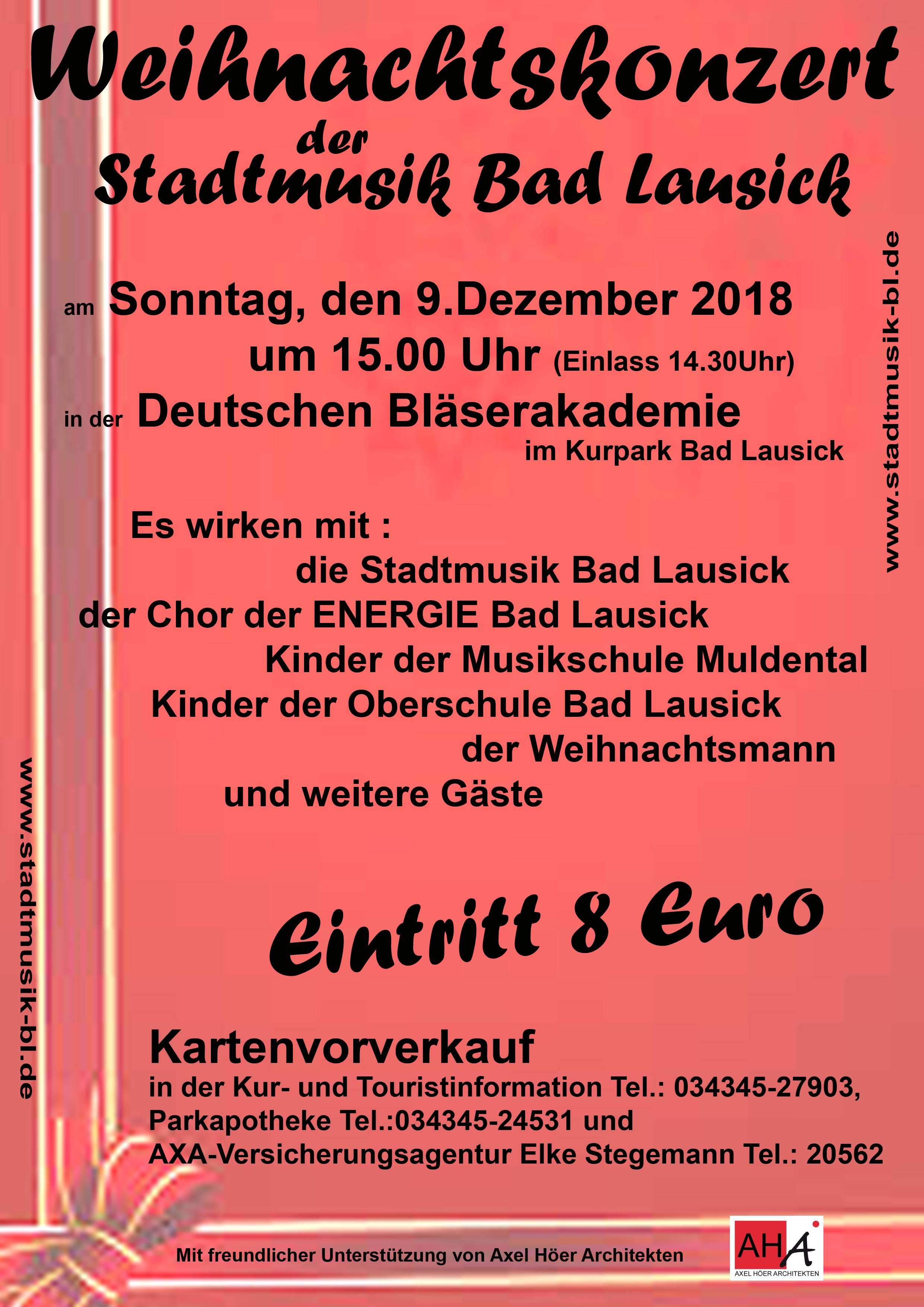 Nun läuft die Zeit voran und Weihnachten ist schon in Sicht. Die Stadtmusik Bad Lausick lädt bereits zu 21. Male