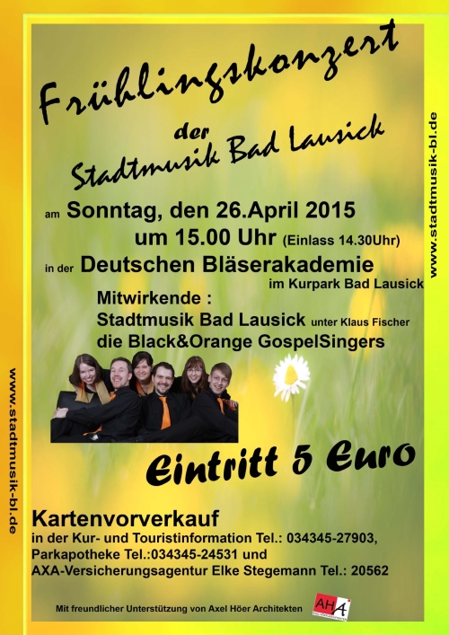 Liebe Freunde der Musik, auch dieses Jahr laden wir Sie zum Frühlingskonzert der Stadtmusik Bad Lausick ein.