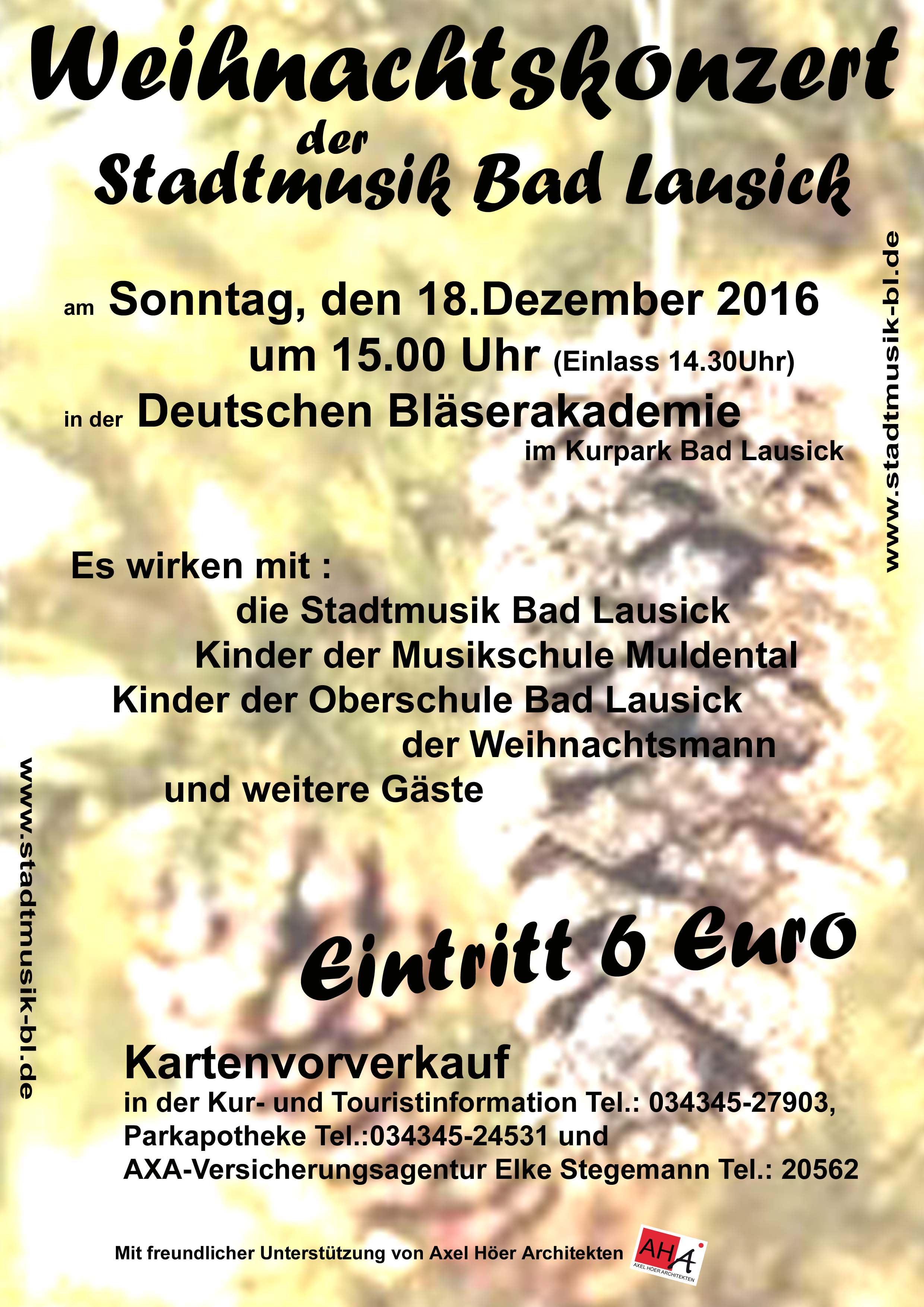 2016 veranstaltet die Stadtmusik Bad Lausick zum 20. Male das traditionelle Weihnachtskonzert.